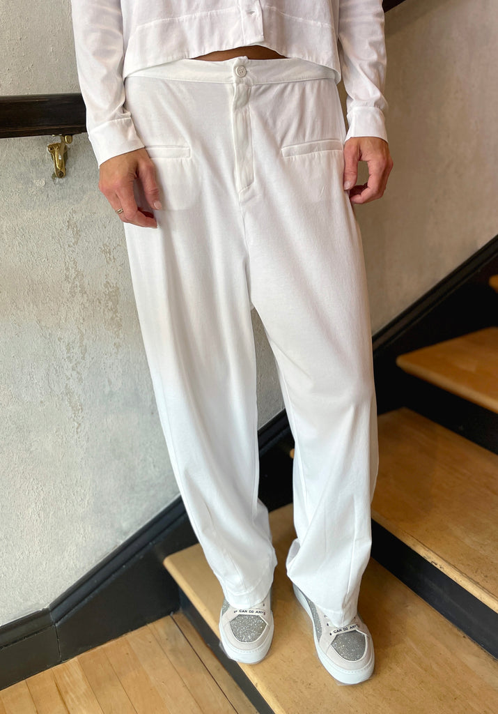 Comfort Fit Stretch Cotton Jersey Trousers - White