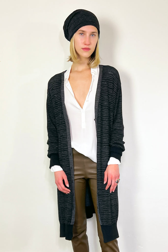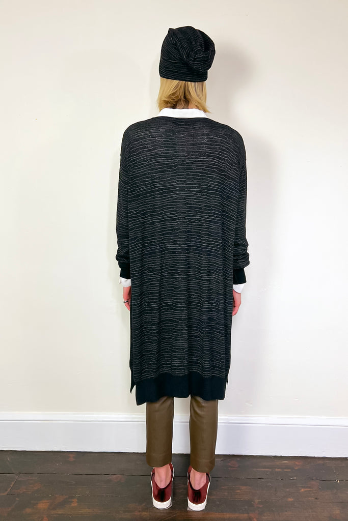 Jaquard Wool Knit Long Cardigan - Black Stripe