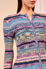 The Lex Cardigan catches the eye with prismatic space-dyed yarns that create a beautiful melding of stripes. This multicolored cardigan is rib-knitted with rows of pointelle trims and has a close fit with frills at the cuffs. It fastens with buttons through the front.