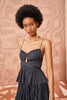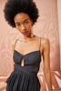 The Lise Top is an ultra-elegant tank top crafted in this season's crushed-pleated plissé satin in a classic black hue. This sleek top is defined by a delicate keyhole at the bust, a crisscross detail across the bodice that creates a peplum hemline, and dainty spaghetti straps.