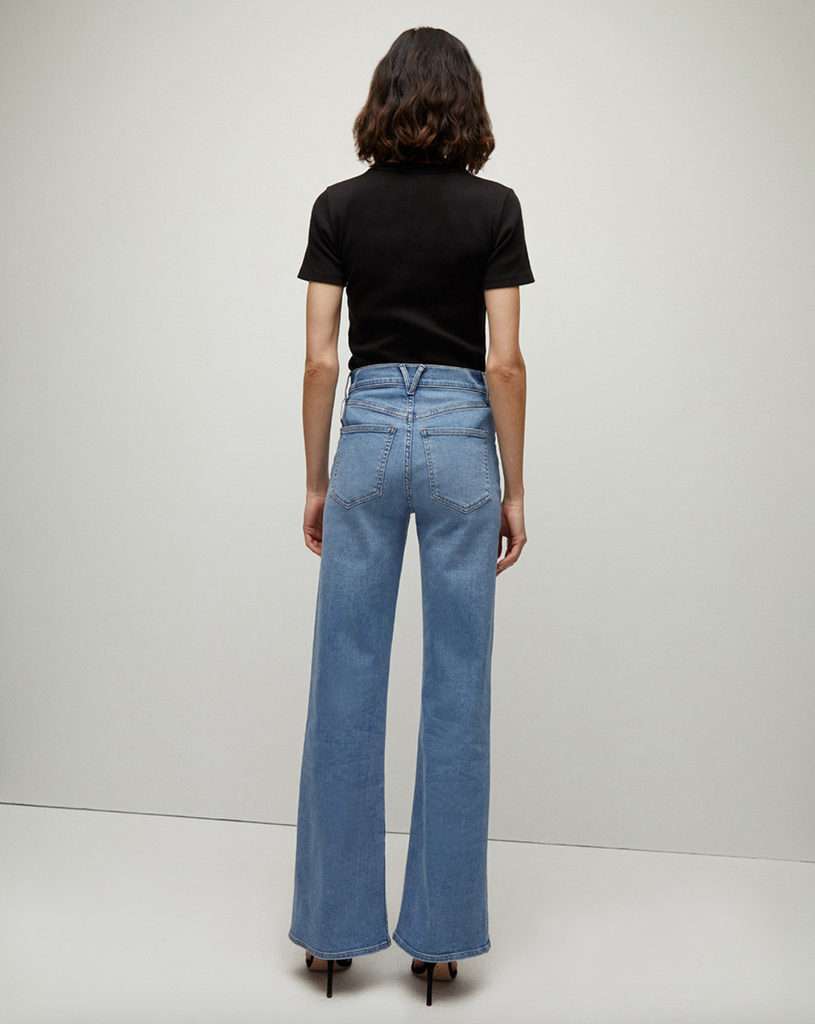 Meet the Crosbie, the elongating high-rise, wide-leg pant. Made in LA in premium stretch cotton from Japan and featuring front patch pockets and our signature V-shape belt loop at the back, this VB favorite is as versatile as it gets.