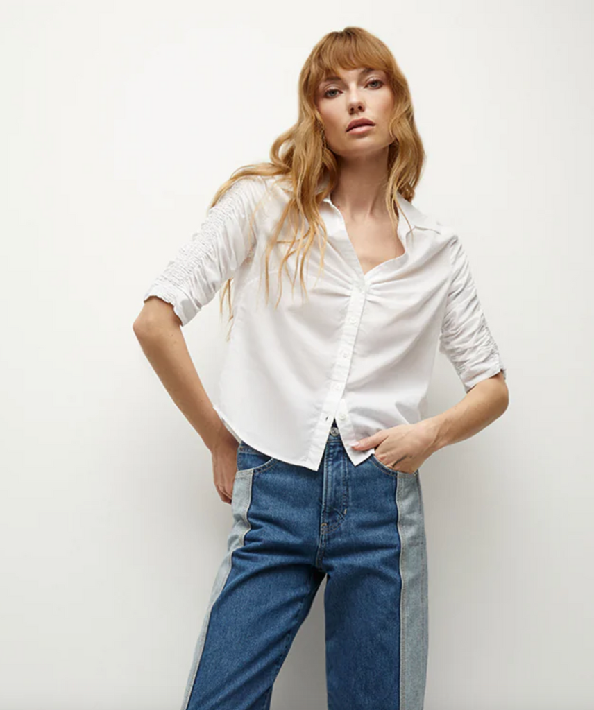 An all-season staple, the Porta reimagines the classic white button-down. Crisp with a modern attitude, this style’s button closure keeps it polished, while ruched half-sleeves and a gathered detail at the chest add a sense of undone femininity. The Porta wears well with others— it goes with anything and everything.
