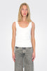 The perfect tank: framed by a scooped neck and back, our smooth Italian stretch-blend top hugs the form to seamlessly slip beneath waistbands for elegant layering.