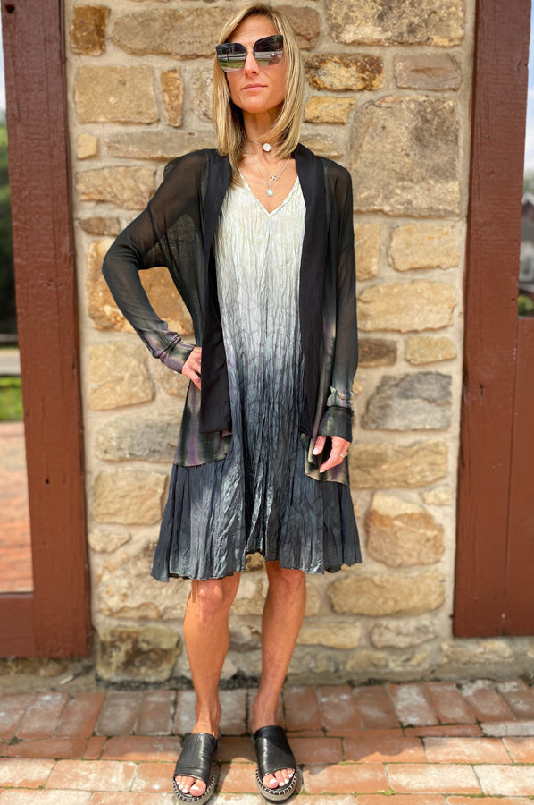 Every Viviana Uchitel piece feels like a poem. Rooted in Buenos Aires, her craft is imprinted with the soul of hand-dyed silk and brushed cashmere, rendering each dress, cardigan, or knit a wearable work of art. Her techniques—tie-dye, dip-dye, shibori, ombré—are as thoughtful as the brushes of light on a canvas.