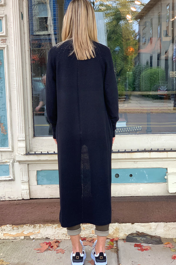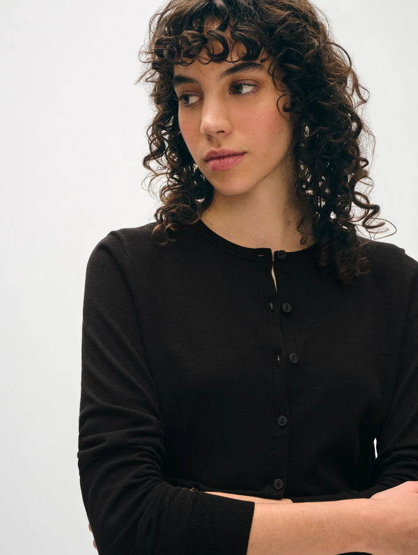 Organic Cotton Crewneck Cardigan - Black