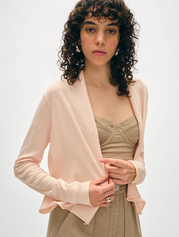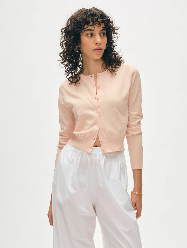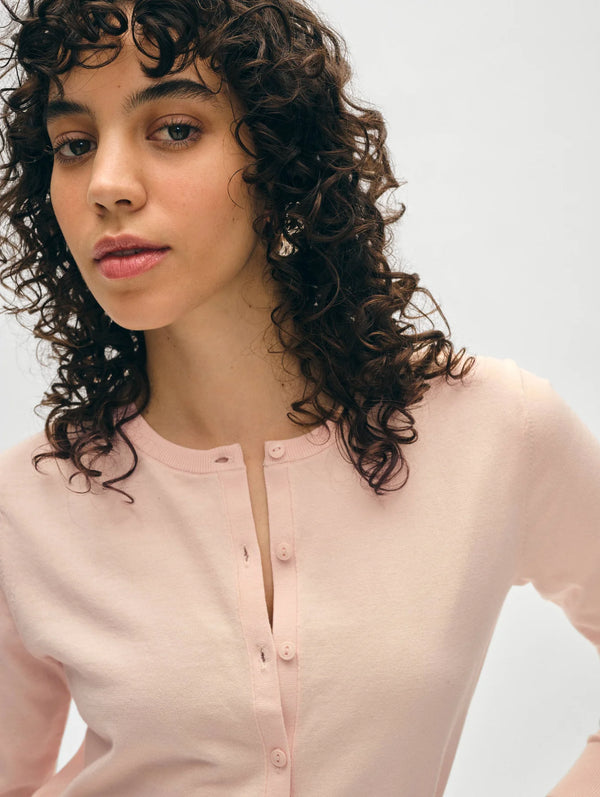 Organic Cotton Crewneck Cardigan - Desert Pink