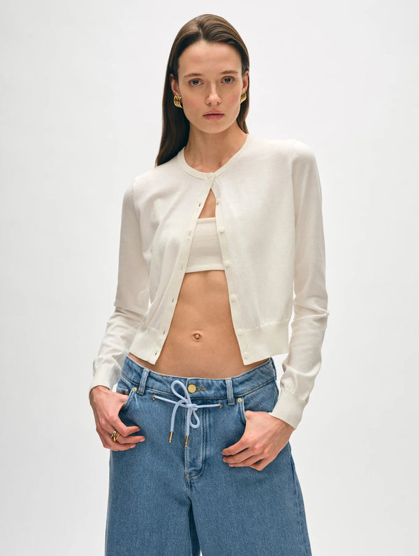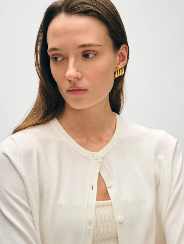 Organic Cotton Crewneck Cardigan - White