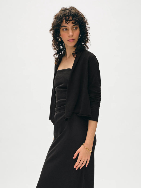 Organic Cotton Cropped Trapeze Cardigan - Black