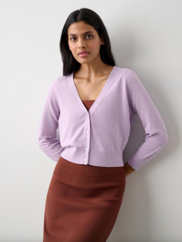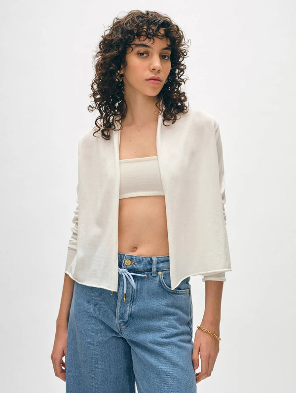 Organic Cotton Cropped Trapeze Cardigan - White