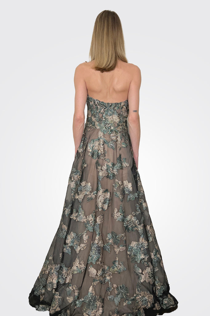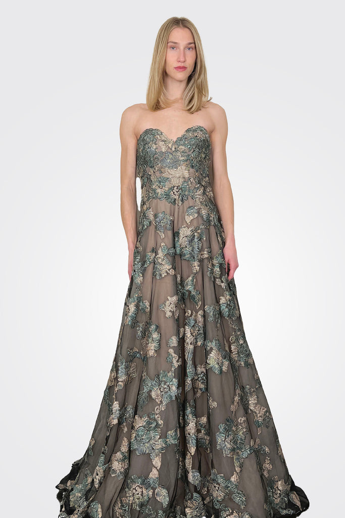 Drift into elegance with this ethereal embroidery gown, crafted with intricate hand-stitched details and soft, flowing tulle.