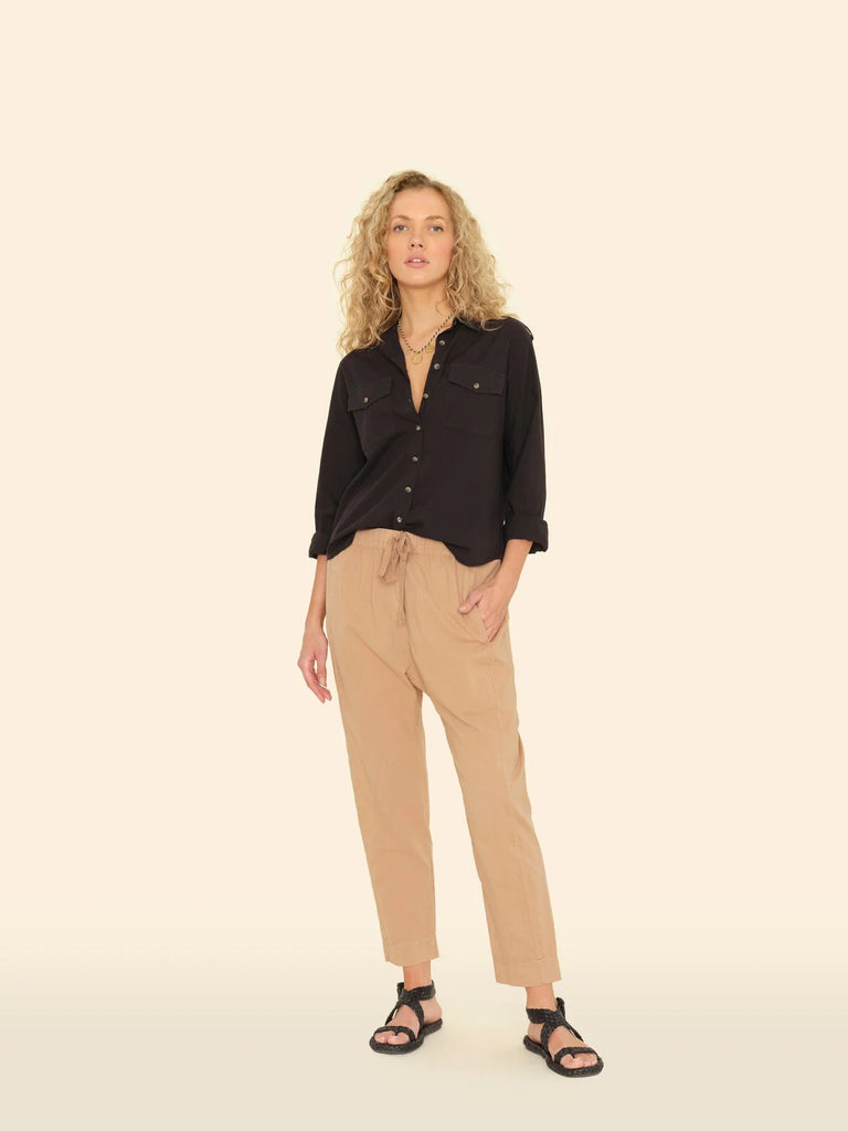 Easy does it. Draper is made in our classic lightweight woven cotton poplin for a lived-in look and feel. Draper is an easy pull-on pant with a drawstring waist and side seam pockets.