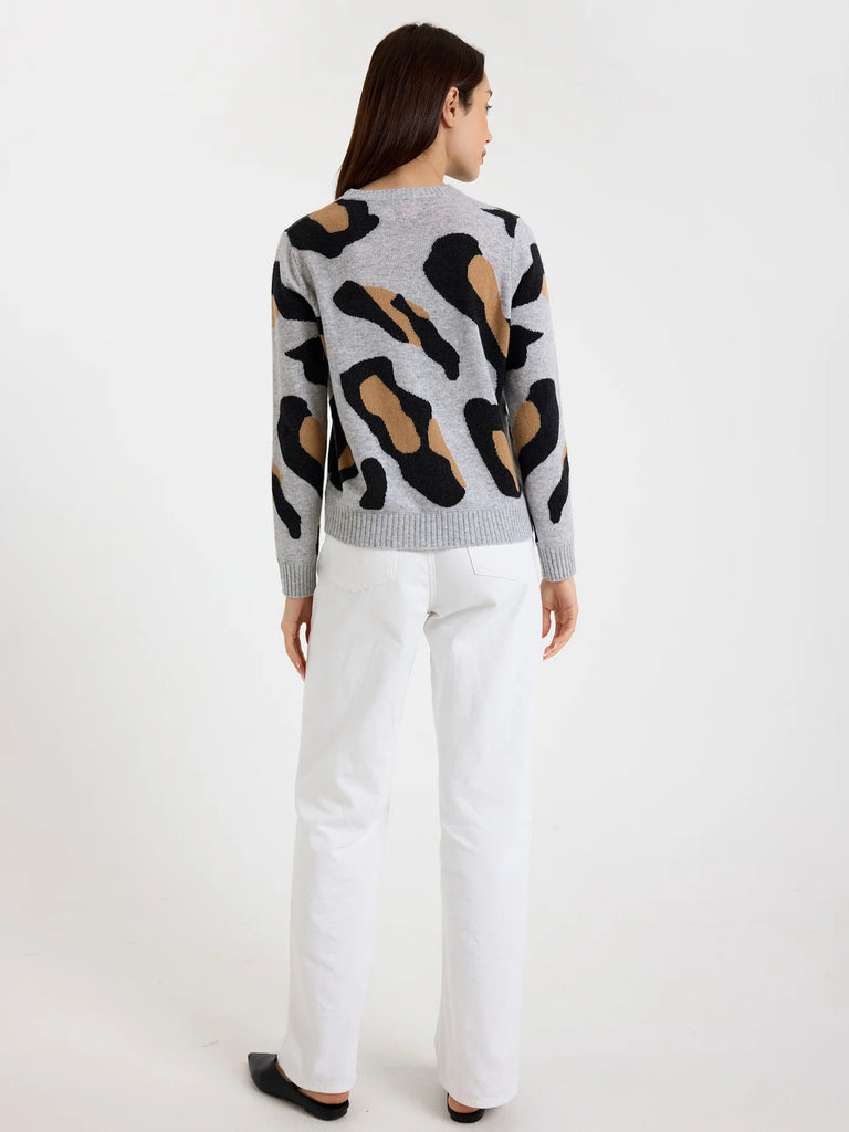 Abstract Leopard Cashmere Crew Neck Jumper - Super Grey