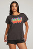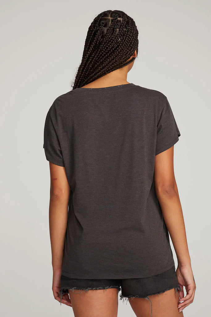 Add a little bit of rock n' roll to your closet with this AC/DC Classic Logo short-sleeved women's tee in vintage black. In 1975, AC/DC debuted their original logo on their first album "High Voltage" which was designed by Gerard Huerta. The simple stenciled lettering of the band's name with a lightning bolt alludes to the raw electric power that's undeniable in their music and live performances. It's one of the most recognized logos in music and fans can show their love for AC/DC with this timeless tee.