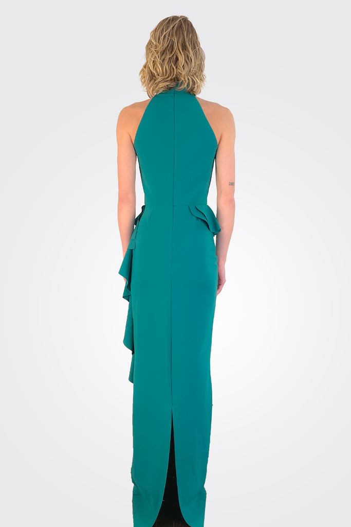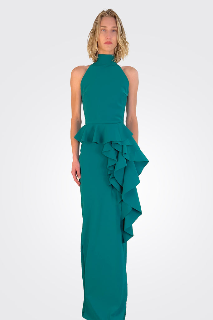Fashioned with a pencil skirt, this gown from Chiara Boni La Petite Robe flaunts a peplum accent at the waist.