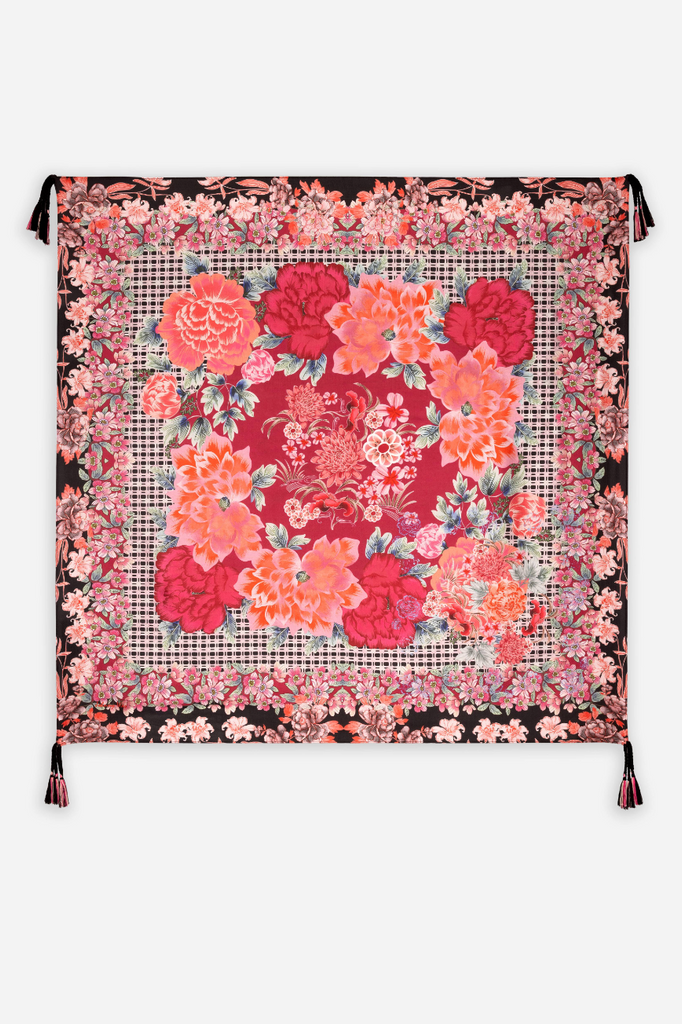 Crafted from 100% silk, the Altona Silk Scarf adds a touch of whimsy to any look. Featuring a variety of brilliant floral patterns against a rich detailed backdrop, this bold scarf is finished with decorative tassels at the corners. Add to a traditional work look for a bold pop of color.
