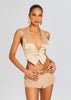 Elevate your style with Andy Vest. The open back design exudes confidence and allure, while the button-up closure offers a polished finish. Perfect for layering under a blouse for a professional look or pairing with jeans for a casual ensemble, this vest is a versatile addition to any wardrobe. Whether you're headed to the office or meeting friends for dinner, this vest ensures you'll make a stylish statement wherever you go. Shown here in Nude.