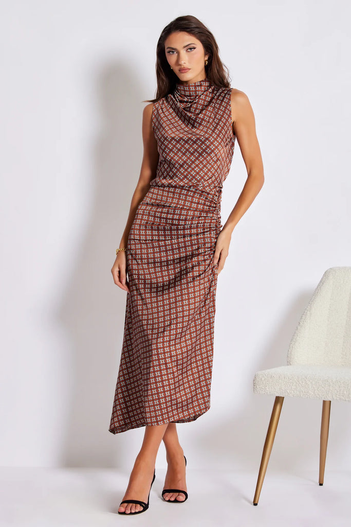 Asymmetrical Midi Skirt - Copper Heritage Print