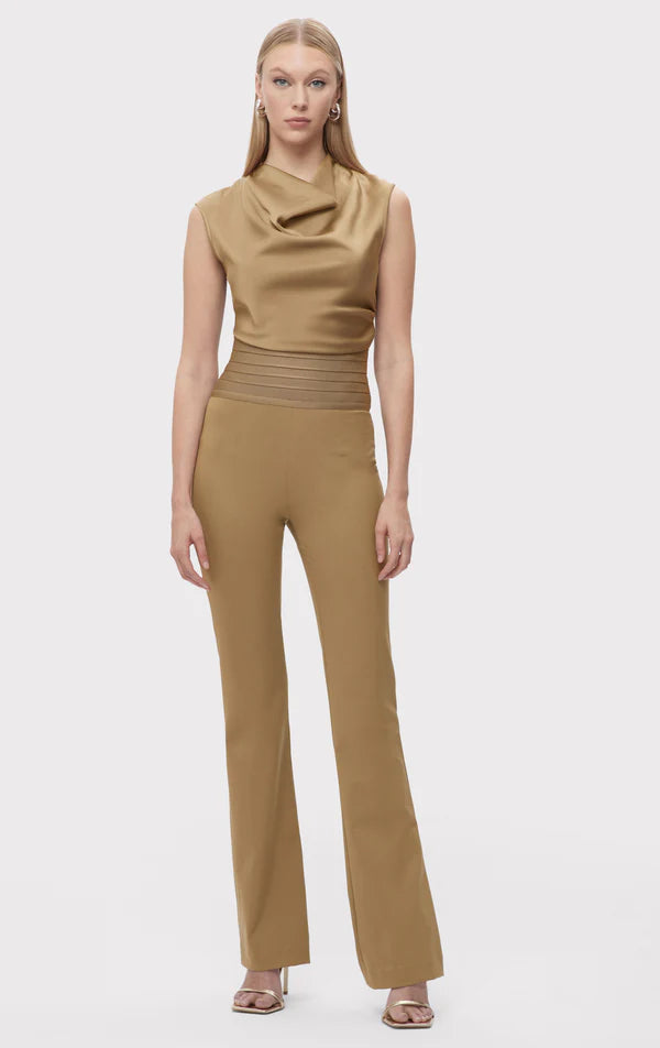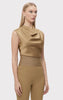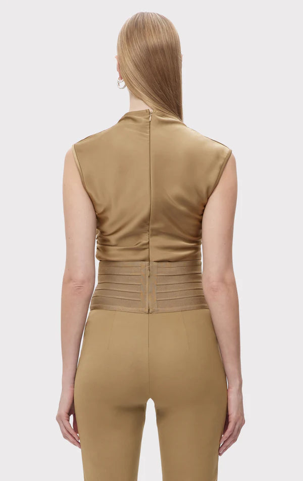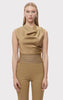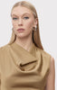 The high-neck Audrey Top is cut from a satiny fabric that drapes perfectly. Designed with a cowl neckline and side gathering, it is finished with center-back zip.