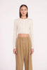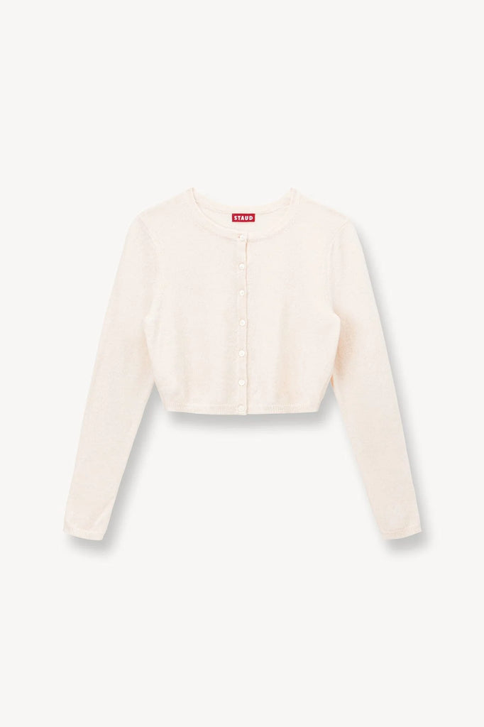 The Deanna Sweater is a cropped cashmere cardigan, a perfect layering piece for the season. The cardigan features a crewneck and button detail.