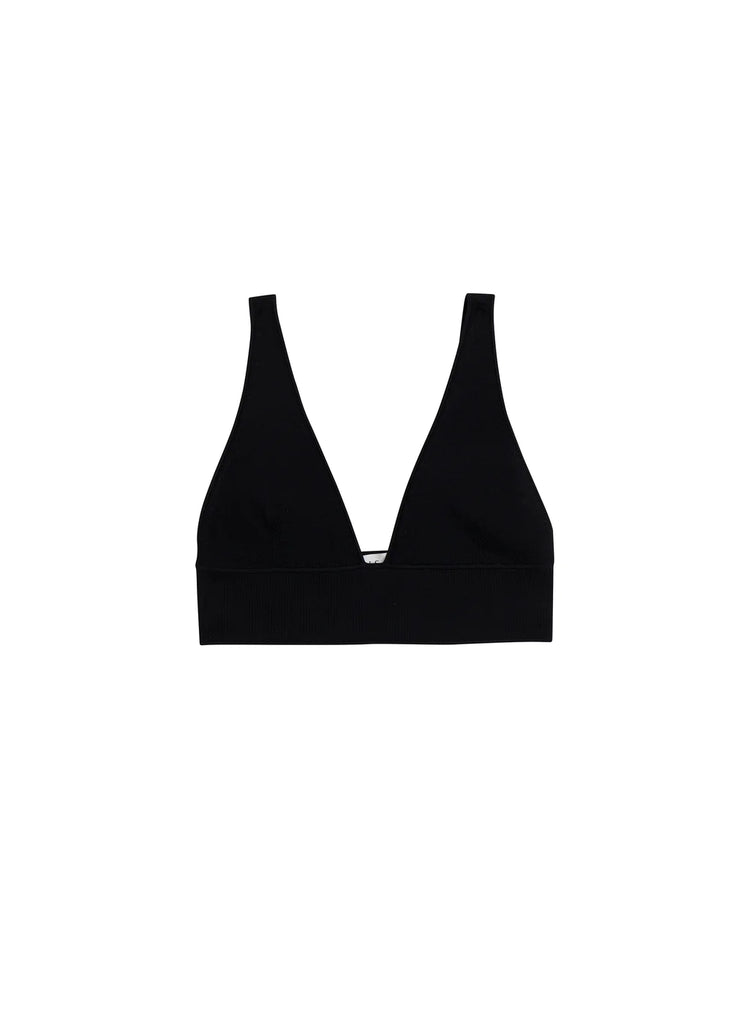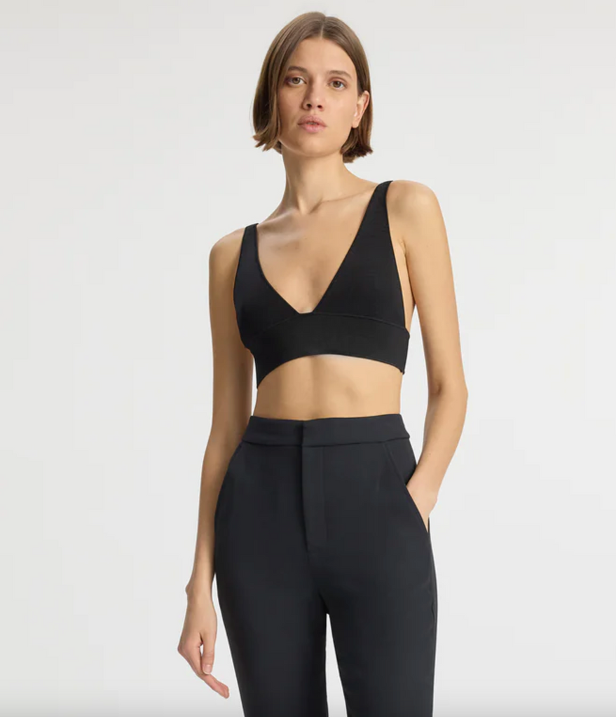 The Ella Bra is crafted from our signature compact knit yarn with a slight sheen, featuring a V-neckline and inch-wide shoulder straps for versatile layering
