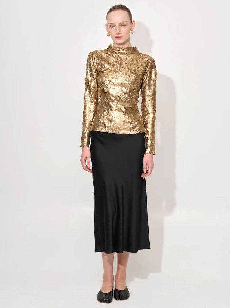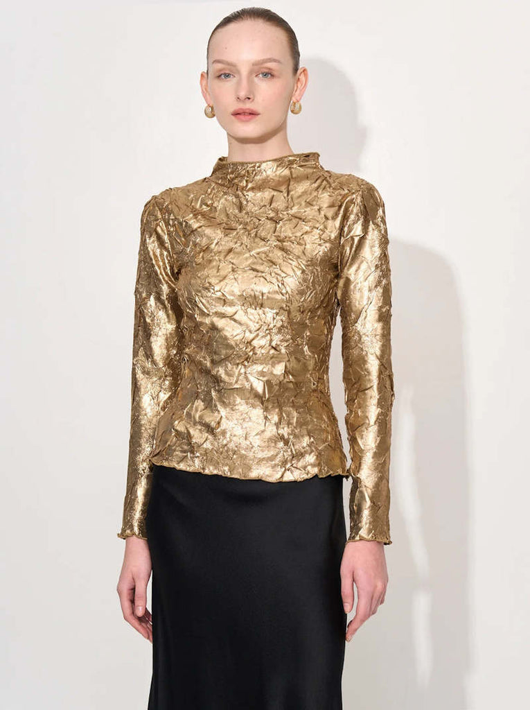 Shibori Pleat Back Cutout Top - Gold