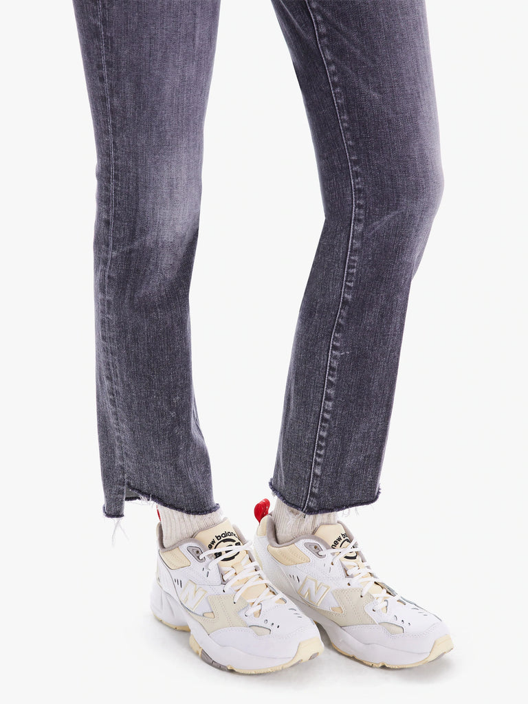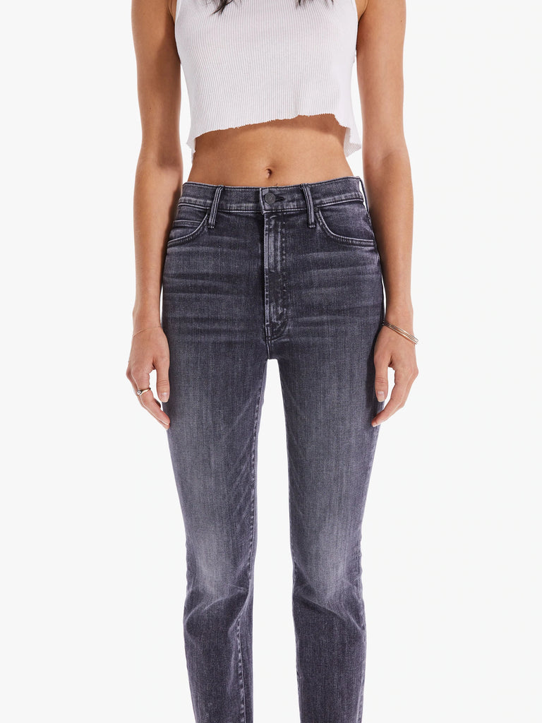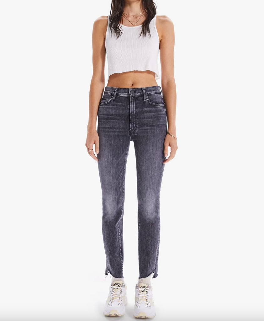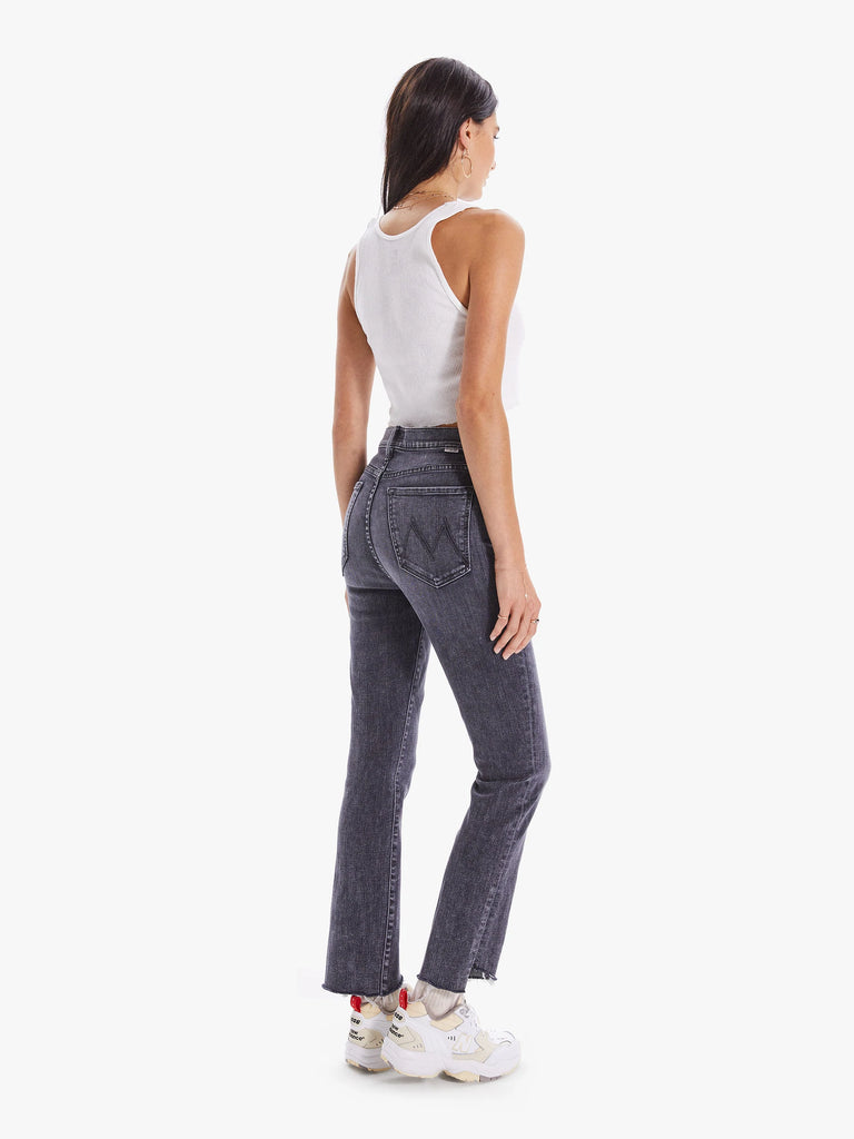 Late night bloomer. A high-rise straight leg with an ankle-length inseam and a frayed step hem. Cut from stretch denim, Night Garden is a washed black hue with contrast fading and whiskering. An overnight sensation.