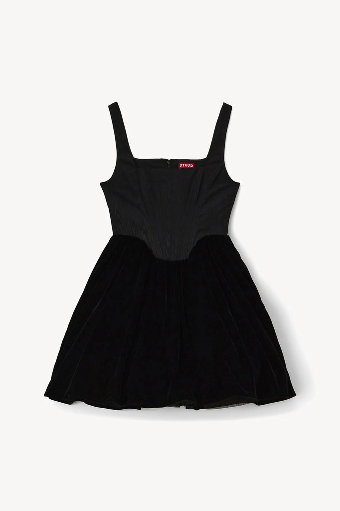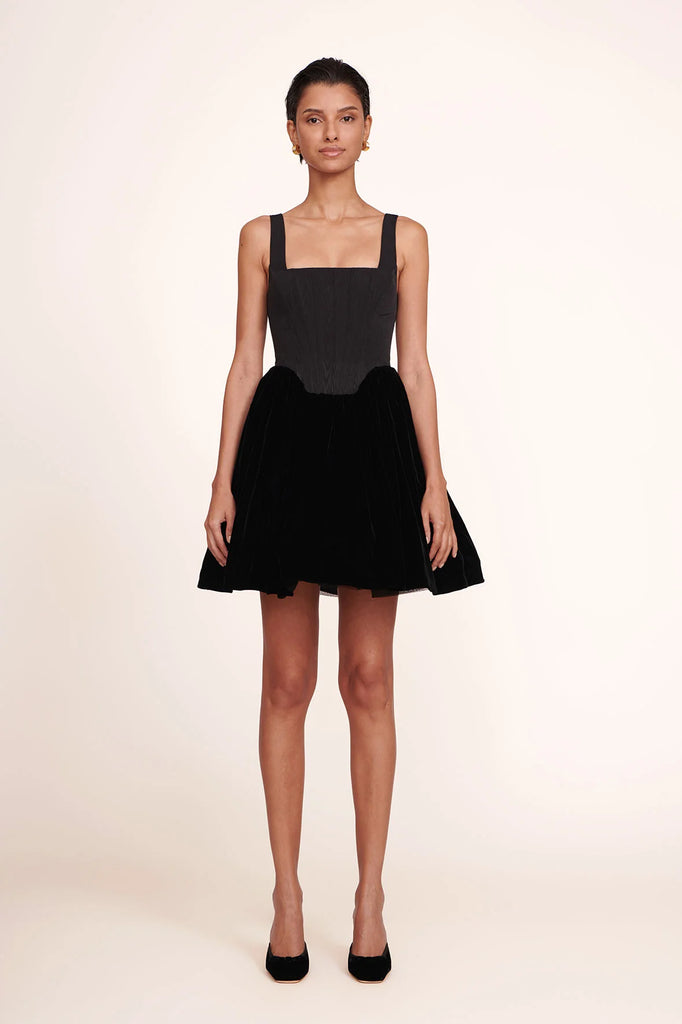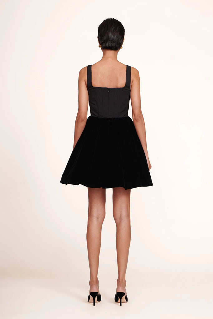 A sleeveless babydoll mini dress, this style features a corset bodice fashioned after our signature Alice Top and tulle skirt.