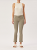 Lt. Coastal Plain is a vintage, soft green garment dye. It features faux front pockets, tonal stitching, matte silver hardware, raw hem with natural fray and an ecru back patch.