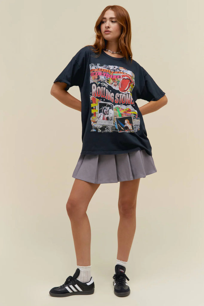 A noteworthy newbie to commemorate the Stones. Meant to feel like a true souvenir, featuring a cut and paste collage highlighting some of the Stones’ most signature symbols. Shouting out one of their best tracks ever recorded, this merch tee is marked with “Time Waits for No One,” a sound made popular by Taylor’s extended guitar solo and Jagger’s lyrics.