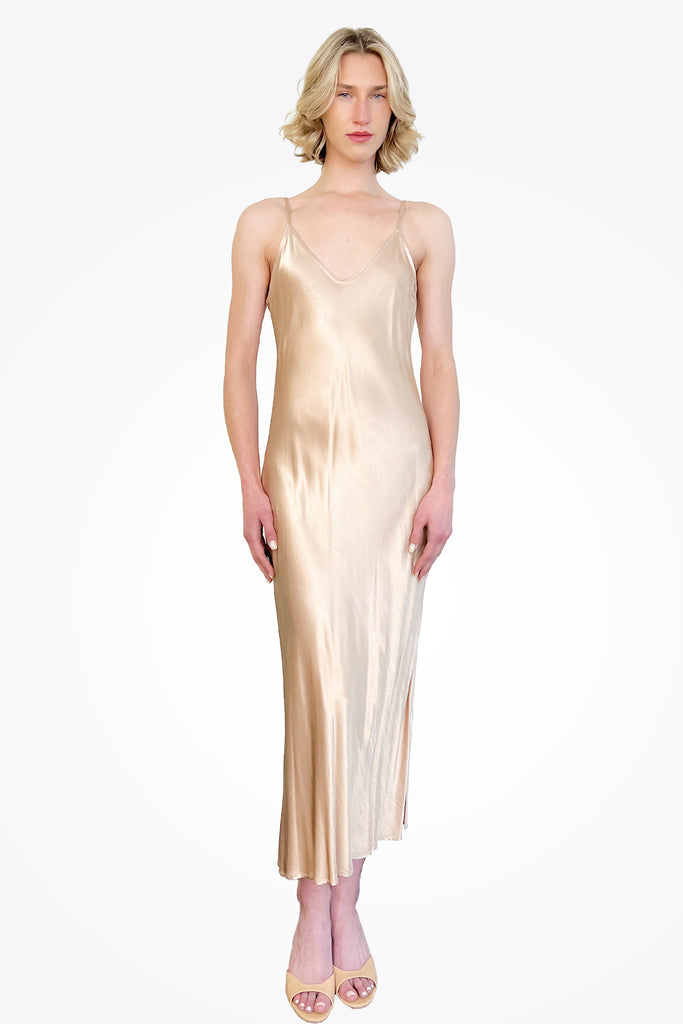 Satin Bias Cut Slip Dress - Khaki