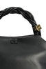 This Black Small GANNI Bou Bag is made from a blend of recycled leather and is designed in a hexagonal shape. The bag features a tone-on-tone metallic GANNI Butterfly logo, nine hand-braided strands with a braided knot and a metallic dice with a GANNI and Butterfly logo engraved. It comes with double compartments, an internal magnet closure, a flat card pocket inside and an adjustable and removable shoulder strap for crossbody wear.