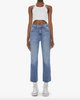 Honk for MOTHER nature. This high-rise skinny-flare has an ankle-length inseam and a clean hem. Cut from semi-rigid denim, Scenic Route is a mid-blue wash with whiskering, fading and distressed details.