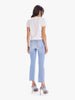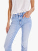 Collector's piece. This iconic high-waisted bootcut is cropped at the ankle with a frayed step-hem. Cut from stretch denim, Limited Edition is a bright light blue wash with whiskering and fading throughout. The rarest of them all.