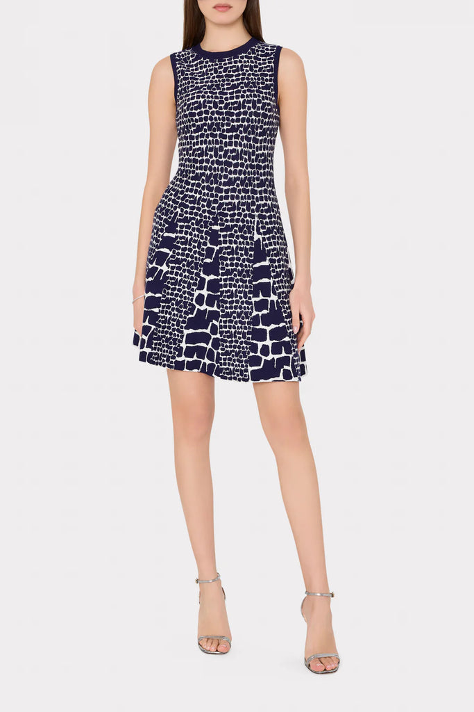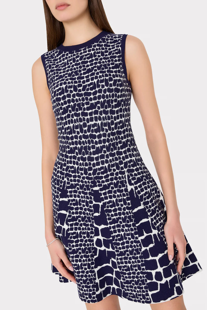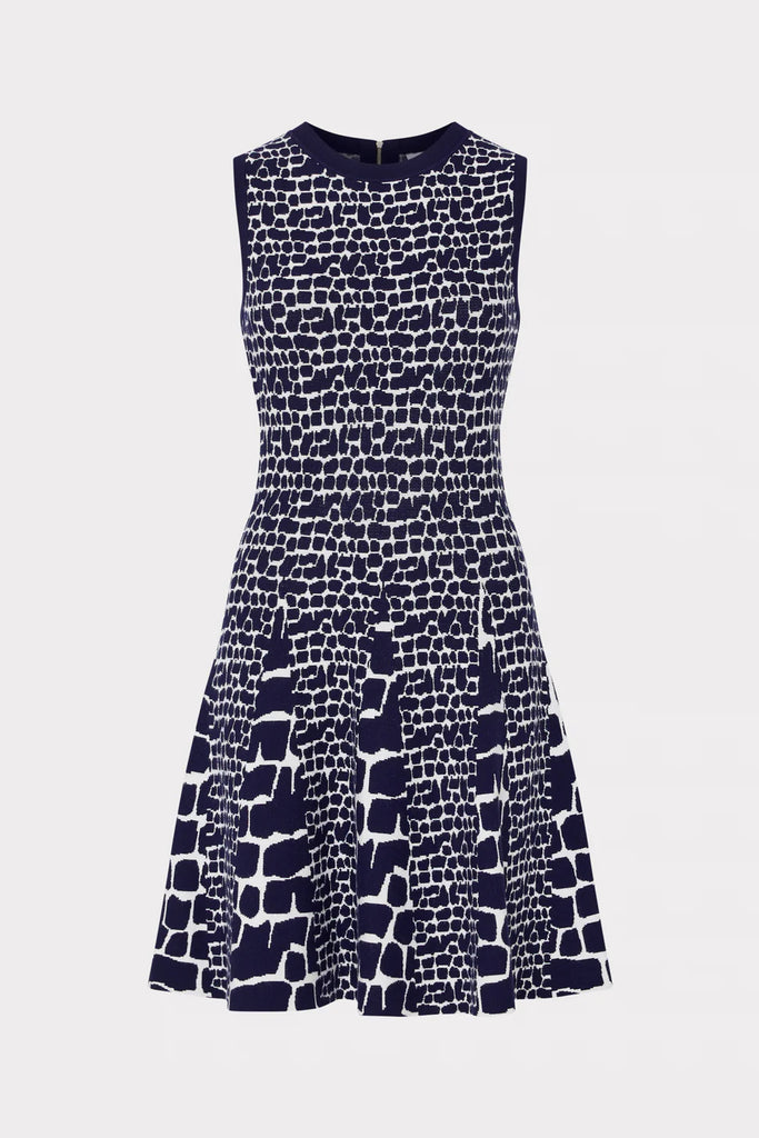 Using our signature knit technique, this super cute and ultra flattering mini dress is done in our Tile Wave fabrication. It’s fitted throughout the bodice and flares out at the waist. This versatile style can easily be dressed down for day or dressed up for night. Accessories as you see fit.