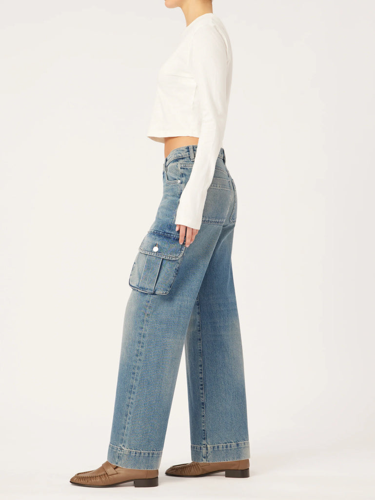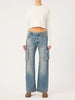 Zoie is a relaxed wide leg with a contoured waistband that sits high in the back and dips low in front for a Y2K inspired look.